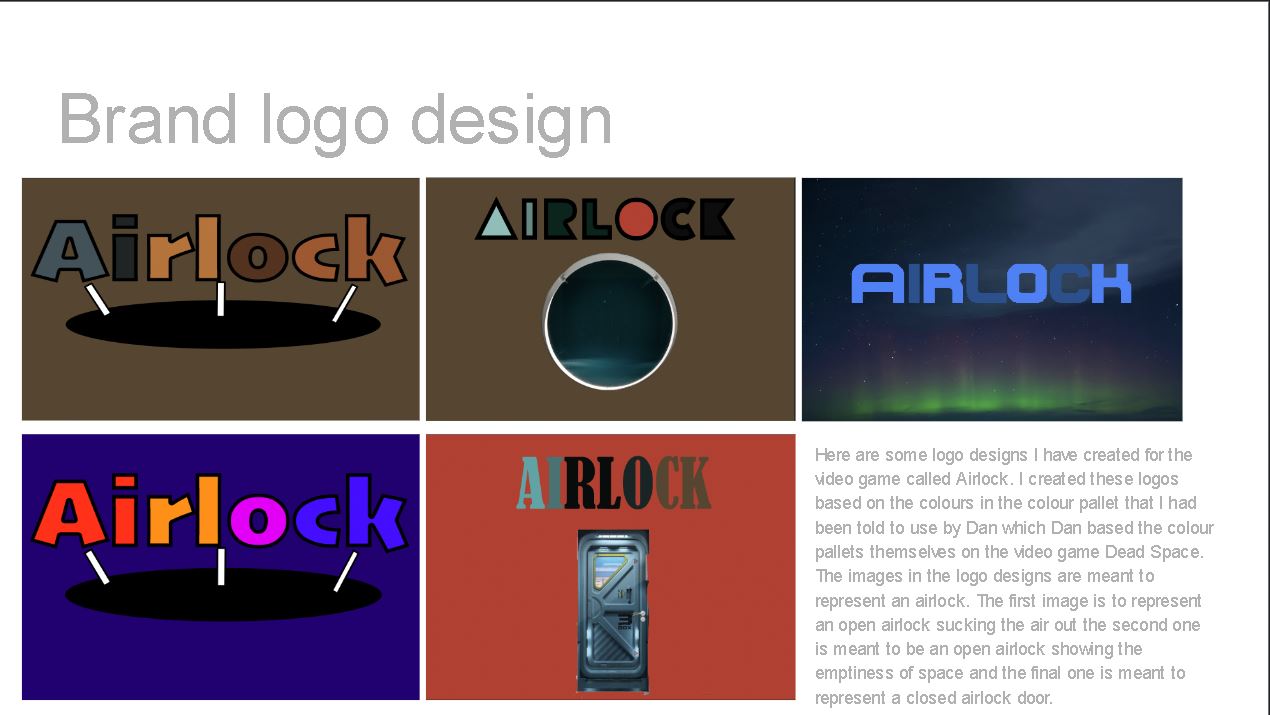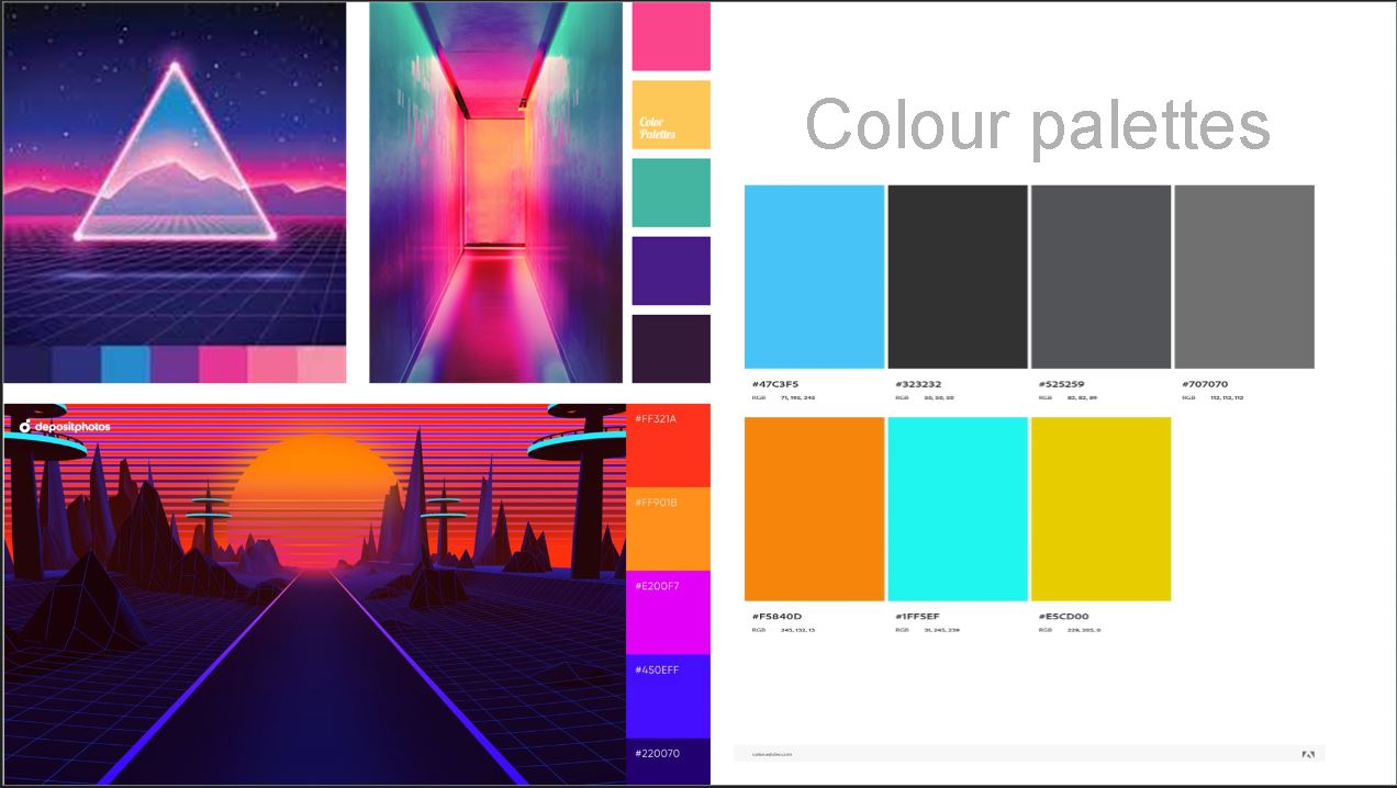 A presentation was created to identify the branding and its constraints for the project, for example, the colour palette all media for the project would follow, be it posters, UI and in-game assets. Defining the overall aesthetic and themality of the project throughout everything that will be done.