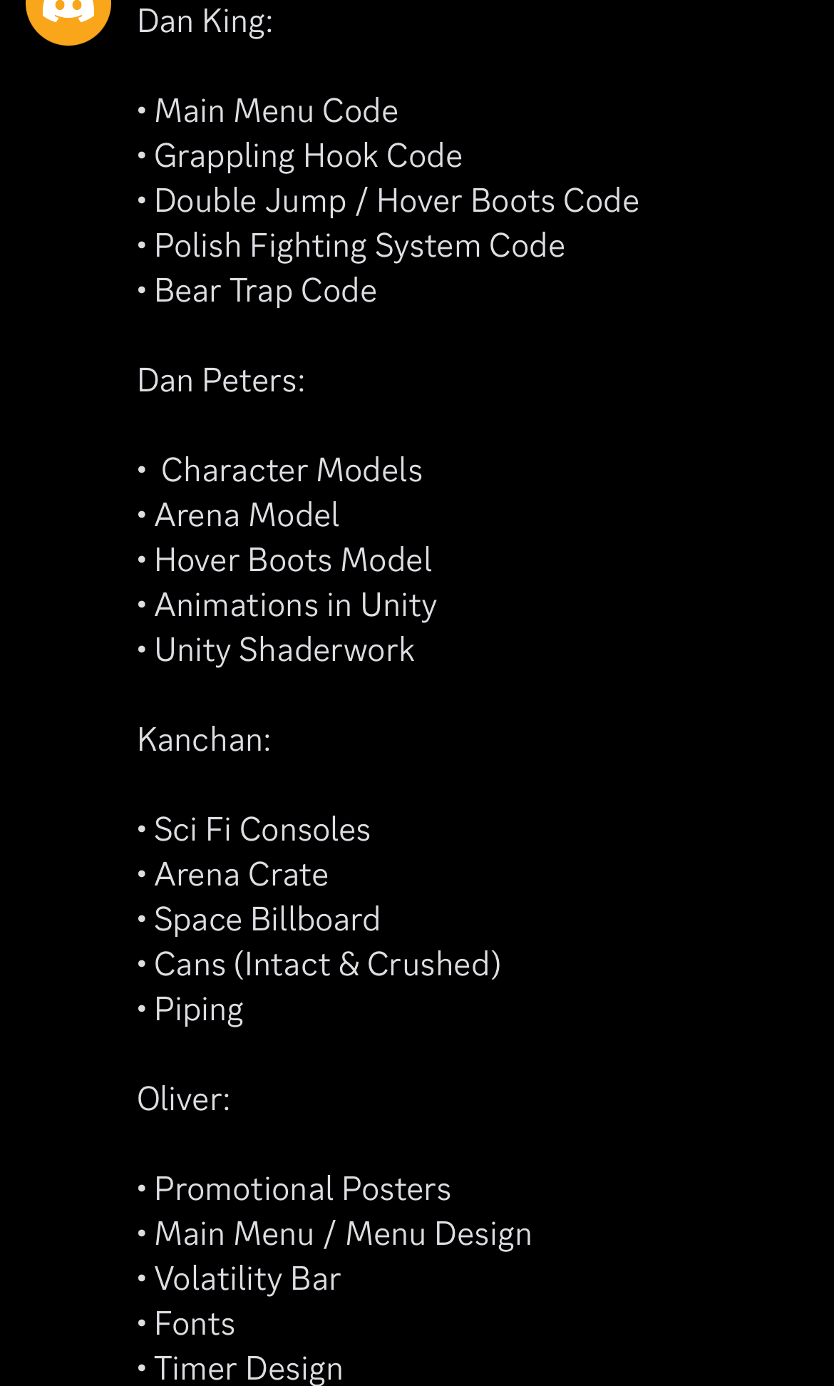 There were tasks assigned to each individual within the group on Discord to make sure everyone understood what they needed to do for the project, initially with it being updated throughout the project with new ideas and features.