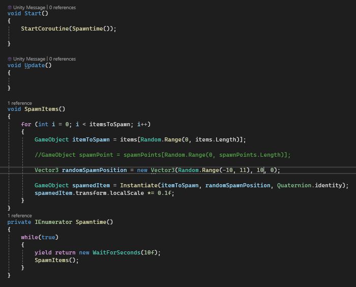 The items now randomly spawn within a specified range across the stage, spanning the full length and being set to the top of the stage to instead of from closer to the ground.