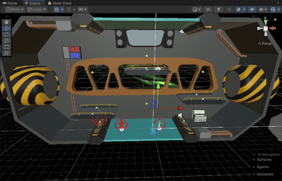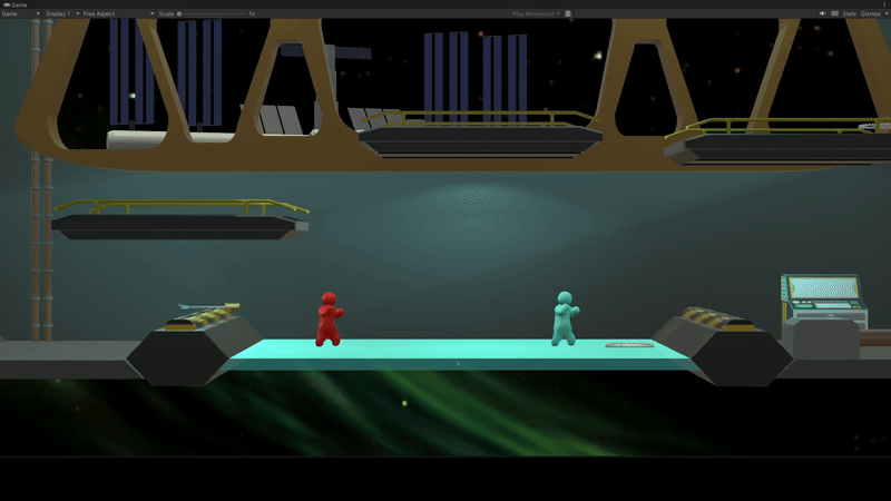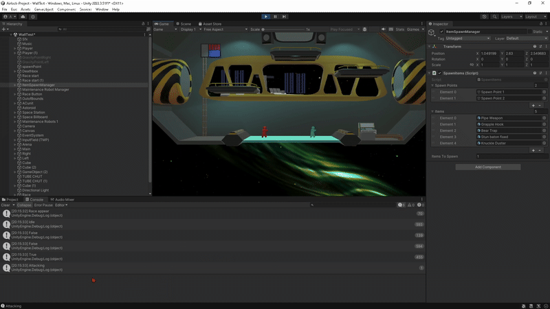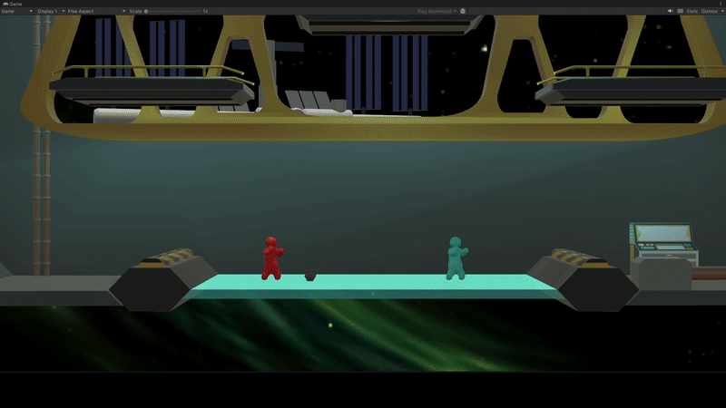 The project Airlock is an arena fighting game with the goal of your player knocking every other player in the match off the map and being the last standing in a free-for-all-like game mode. Use your fists and the items scattered around the arena to attack other players to systematically knock them back, aiming for the main doors of the airlocks with enough impacts, causing the doors to break away, triggering an Airlock breach, sucking the players across the areans towards the outside space requiring the players skill and luck to prevent being sucked out which would end up eliminating them. After a certain amount of time, if there is still more than one player standing, the winner can then be decided by a race which opens up below the arena, taking skilful movement to manoeuvre the shortest route down, with whoever first presses the button at the end winning the match.