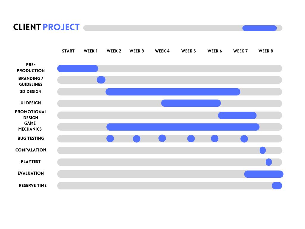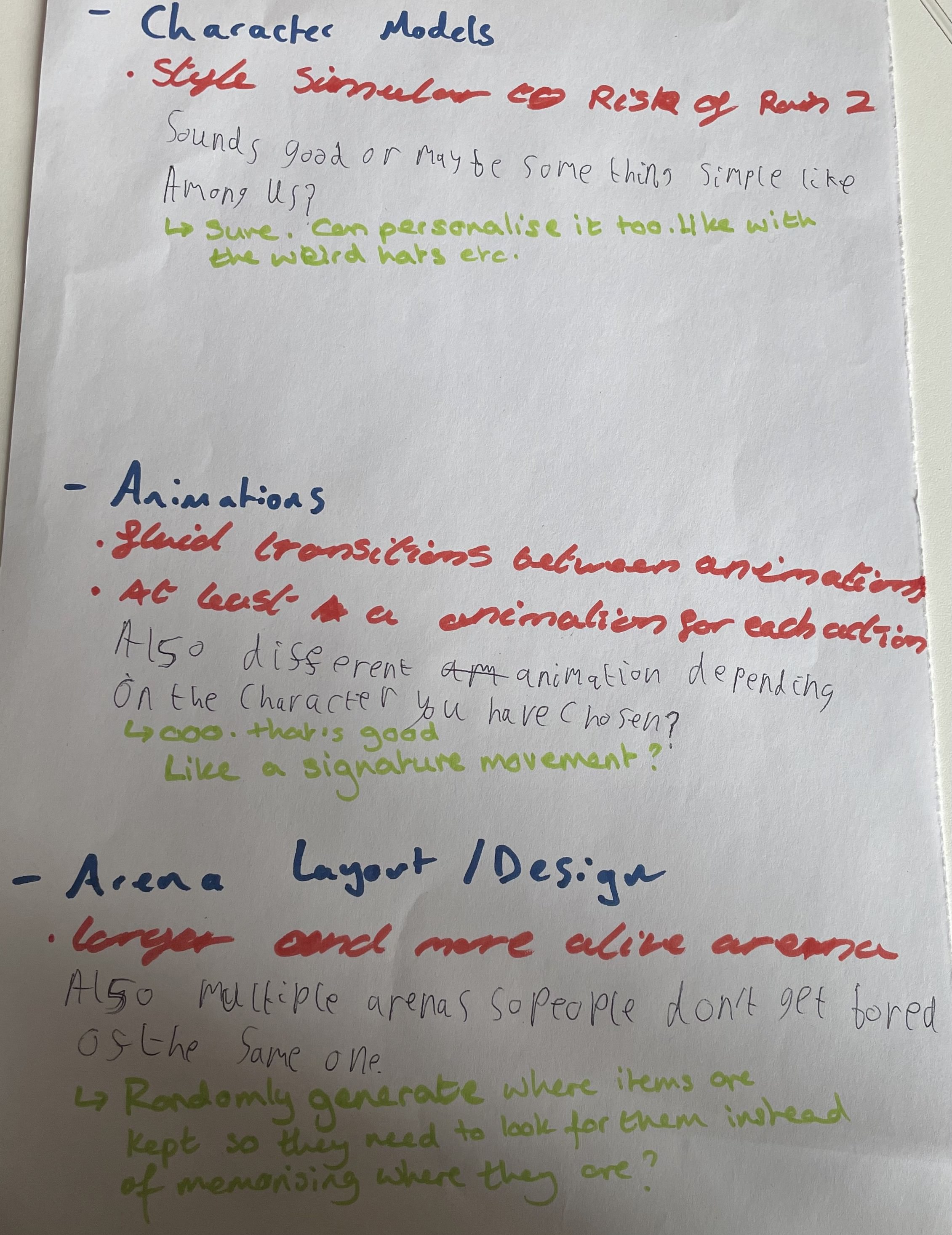The research for this client project was split into 3 stages, one being an overview of all important new mechanics that were planned to be included, and how I envisioned them functioning in-game. As well as at the beginning, outlining what the client wanted, our ideas on improving the base concept, the production cycle, and reaffirming the target audience to see if anything needed to be changed and tweaked to better fit the audience. There was also a brainstorming activity between the group members to further flesh out individual ideas on the game and add further ideas on top.