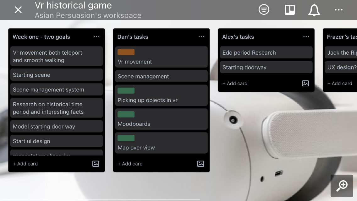 We also made a Trello board to keep up to date with the tasks that we needed to do and the tasks that we have already completed helping us understand where we are as a group in comparison to the Gantt chart I made so we could see if we were lagging behind or had extra time to do other tasks.